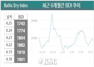 ????? ??, ?? ??? ??? ?? 4?25? ???? ????(BDI)? ???? 31??? ??? 1743?? ????. ?? ?? ??? ???? ??? ?? ????&nbs