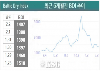 BDI 1407???…????, 2? ?? ??? ??? ?? ??2?2? ???? ????(BDI)? ???? 19??? ??? 1407? ????. ?? ? ?? ??? ??? ???&nbs